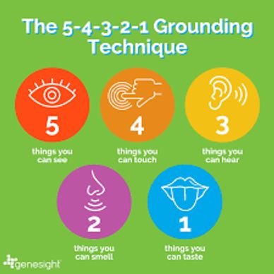 Try the 5-4-3-2-1 grounding exercise: Count down while listing 5 things you see, 4 things you touch, 3 things you hear, 2 things you smell, and 1 emotion you feel.